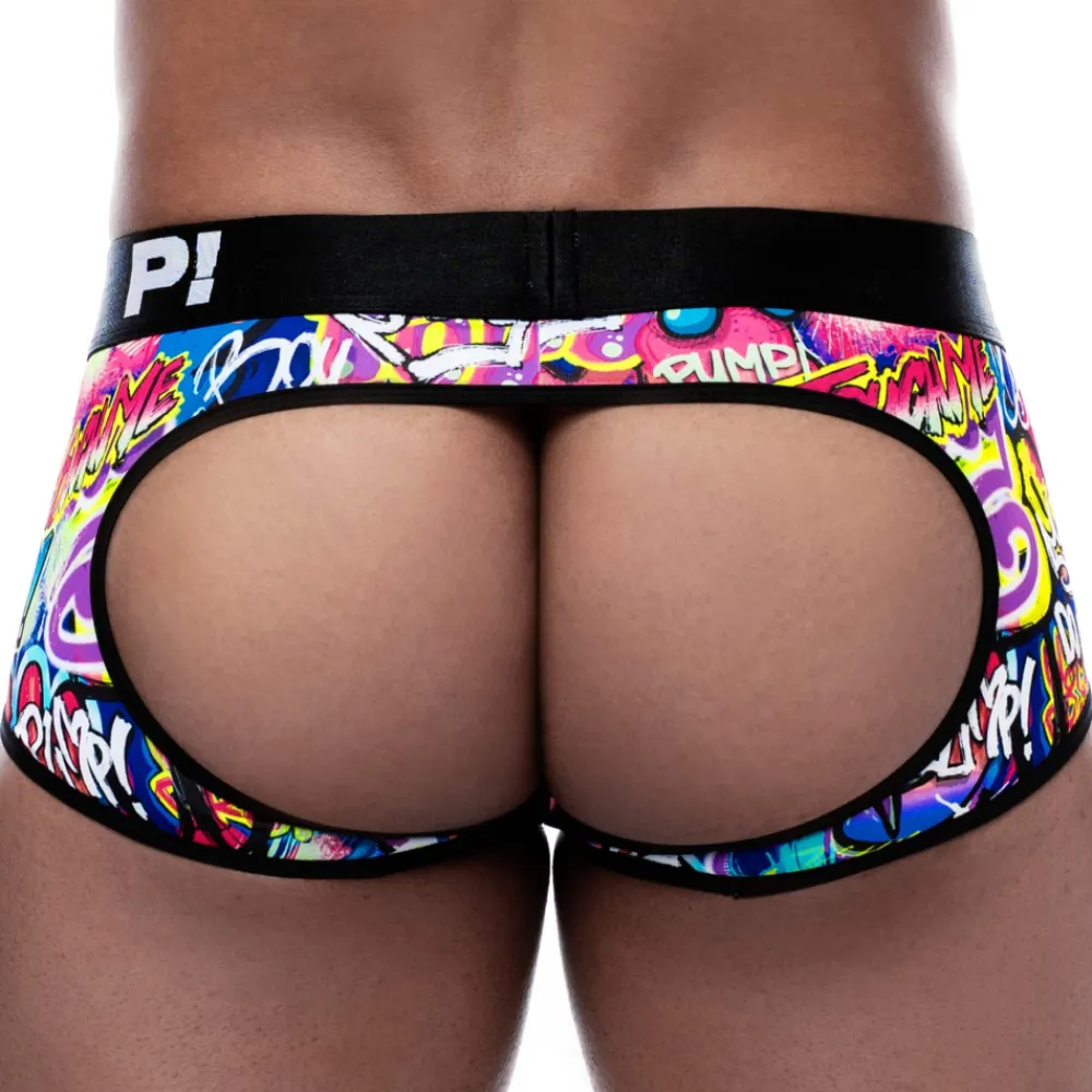 Shorty empty bottom doux et confortable en microfibre stretch recyclée à partir de bouteilles en plastique. Impression graffiti multicolore réalisée selon un éco-processus sans eau. Tissu très résistant au boulochage, à la chaleur, à la transpiration et à la lumière du soleil (UPF 50+). Poche frontale doublée en coton. Ceinture élastique signée Pump!. L’imprimé est positionné de façon aléatoire, ce qui rend chaque modèle unique.