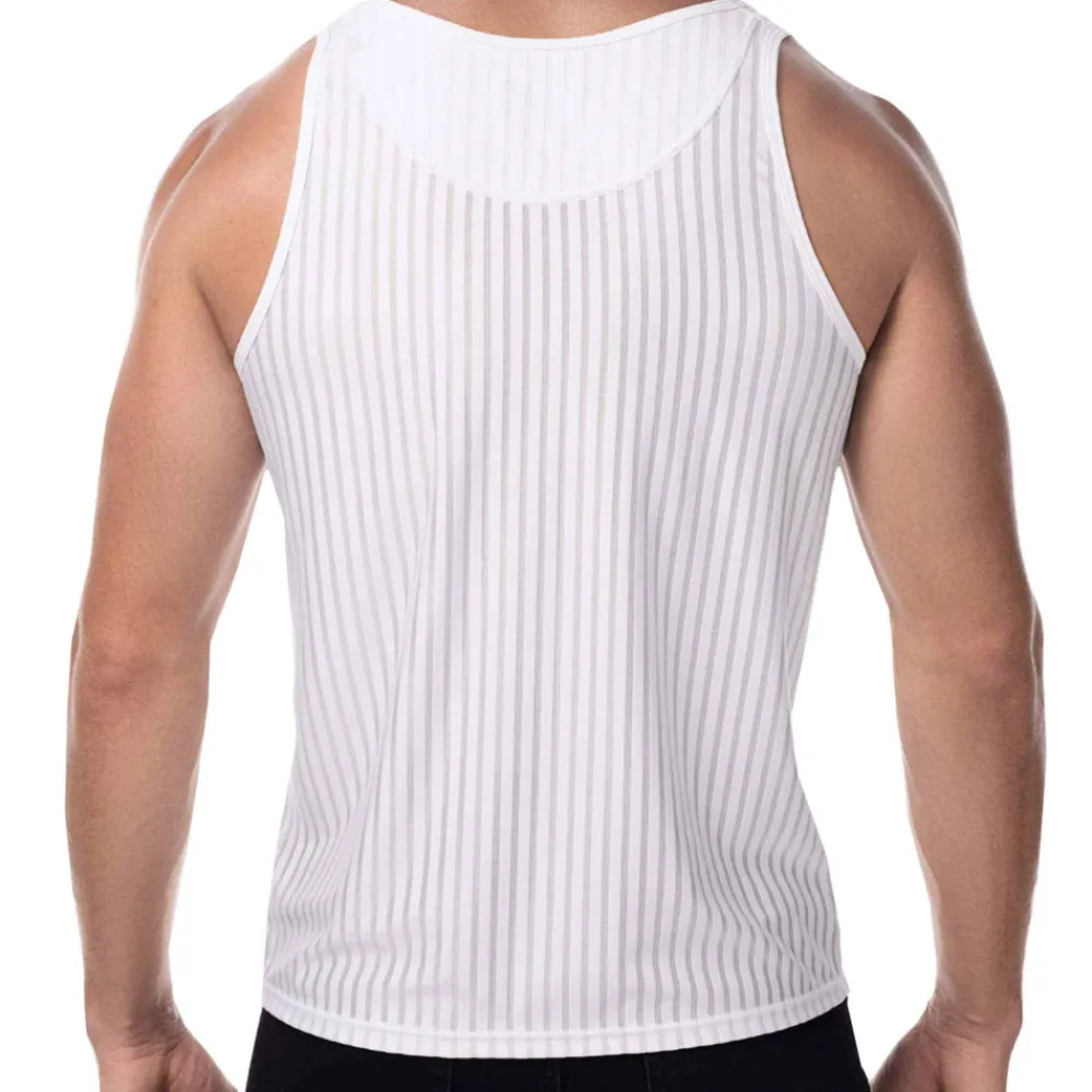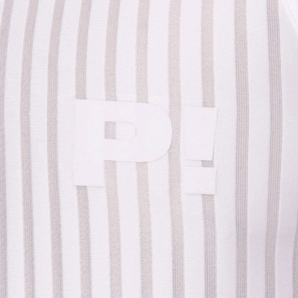 Débardeur super confortable en microfibre extensible, douce et respirante. Conçu pour mettre en valeur votre silhouette. Alternance sophistiquée de rayures verticales transparentes et opaques. Bordures du col et des manches en micro-mesh. Logo P! floqué sur la poitrine.