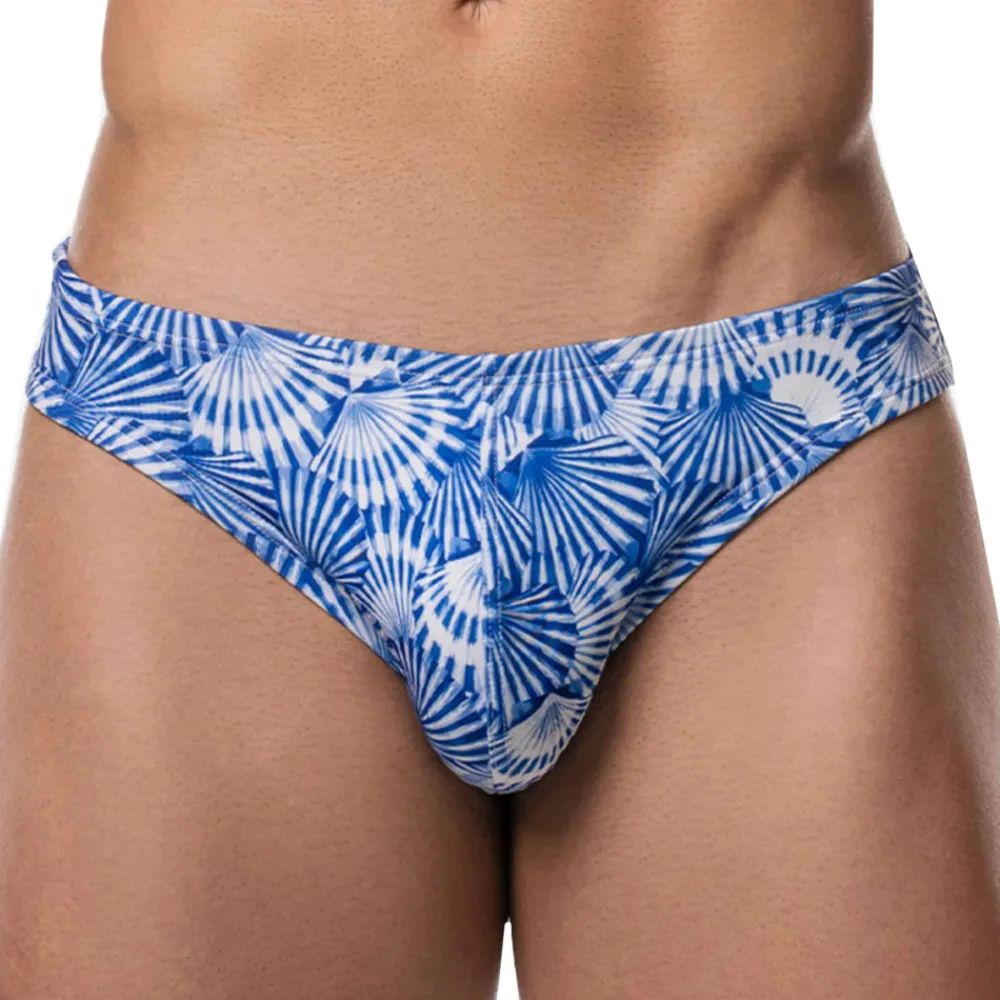 Slip de bain doux et confortable en microfibre extensible recyclée à partir de bouteilles en plastique. Motif coquille imprimé. Coupe bikini taille basse super ajustée. Tissu de grande qualité avec protection solaire UPF 50+. Poche frontale doublée.