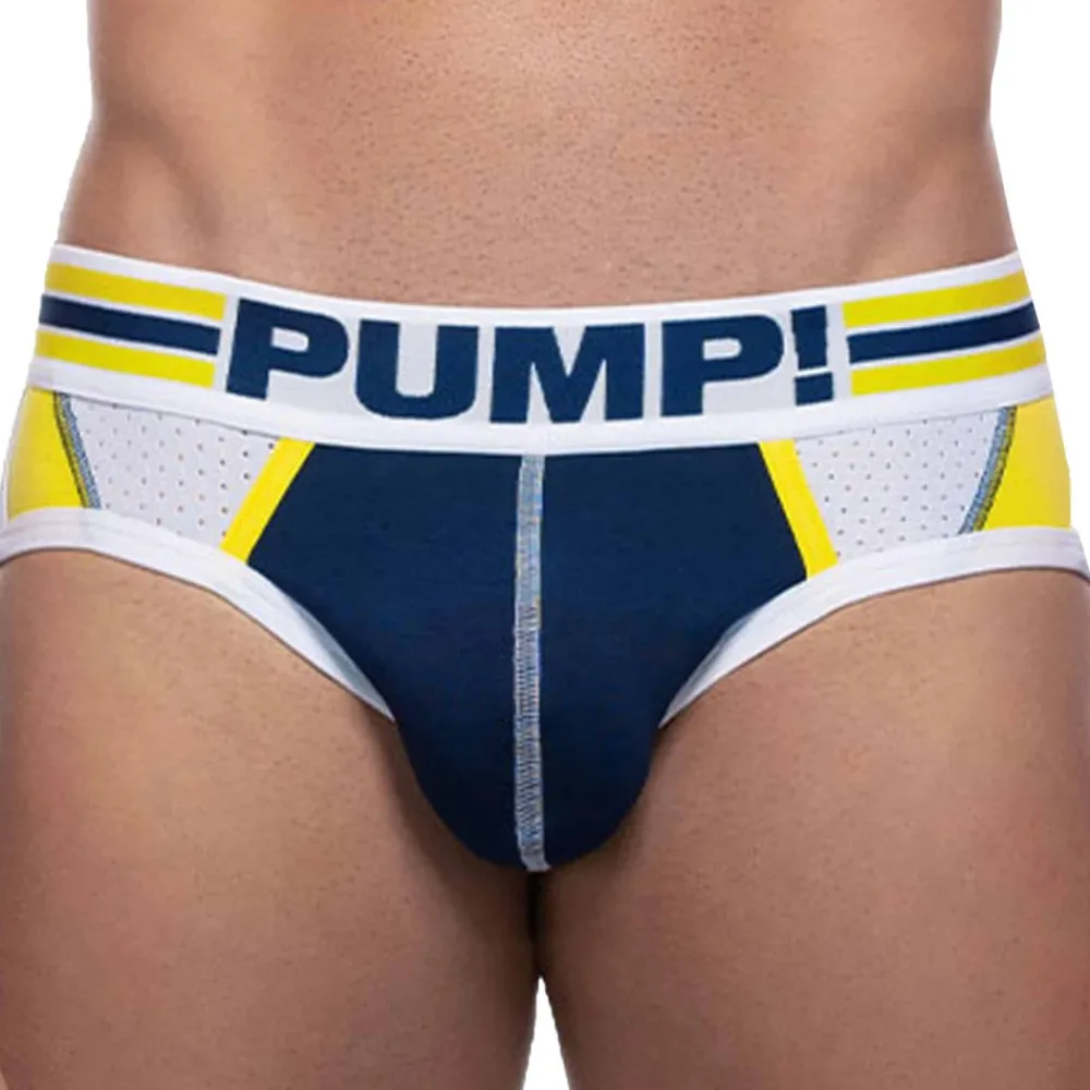 Slip en coton stretch doux et confortable. Poche frontale préformée et doublée en coton. Logo Pro-league sur la fesse droite. Empiècements en micro mesh respirant devant et derrière. Bordures des cuisses élastiquées. Ceinture élastique large signée PUMP!.