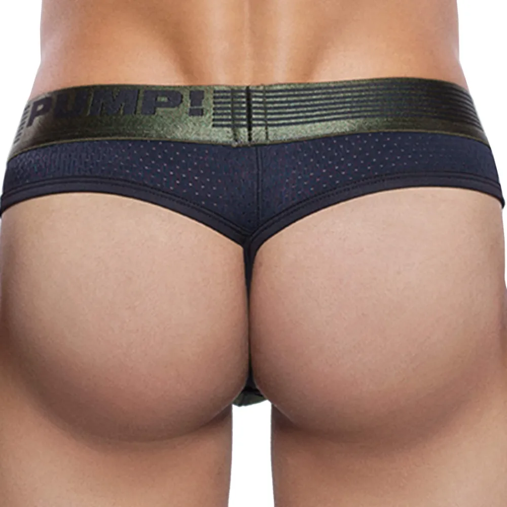 String super confortable en mesh sport respirant. La poche frontale doublée de coton est accentuée par la couture verticale. Ceinture élastique signée Pump!.
