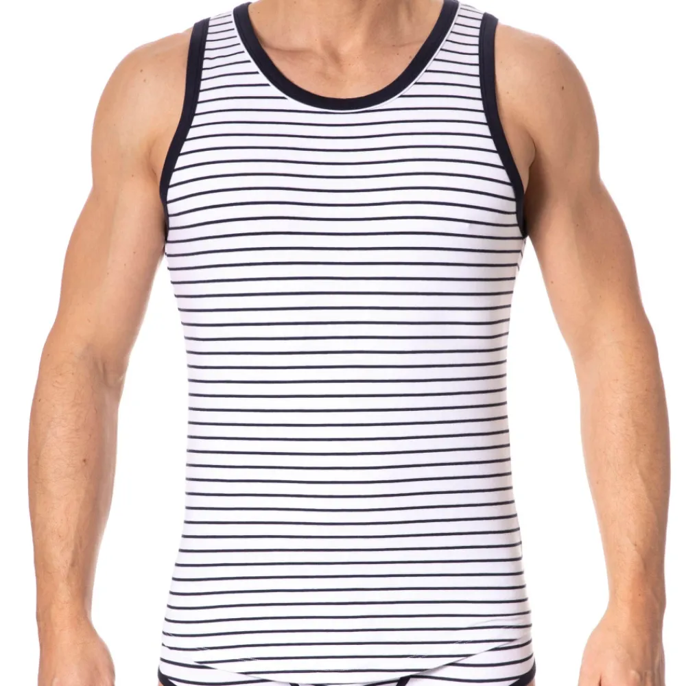 Débardeur sport et sexy en coton premium doux et extensible de couleur intense. Cintré juste comme il faut, il valorisera votre musculature sans gêner vos mouvements. Coupe courte et arrondie en bas, pour tomber parfaitement sur un pantalon. Le col rond est subtilement souligné par un liseré de couleur contrastée.