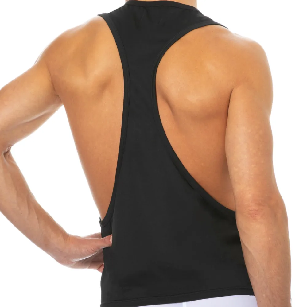Débardeur sport en microfibre extensible, ultra douce et légère. Coupe sexy dévoilant le corps grâce au col profond, aux larges ouvertures sous les bras et au dos nageur. Logo SKU de couleur contrastée sur la poitrine.