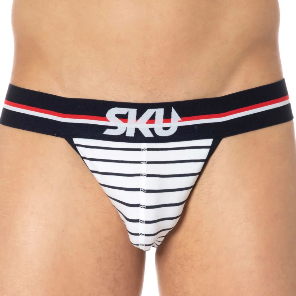 Jockstrap sport et sexy en coton premium doux et extensible de couleur intense. Coupe taille basse ajustée. Poche frontale préformée assurant un excellent maintien. Ceinture tricolore large et douce signée SKU. Bordures contrastées.