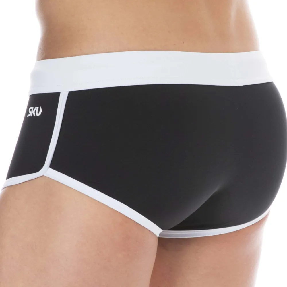 Shorty de bain sport en microfibre séchant rapidement. Coupe taille basse très ajustée. Poche frontale doublée. Bordures de couleur contrastée. Logo SKU imprimé sur la cuisse gauche. Ceinture élastique avec cordon de serrage.