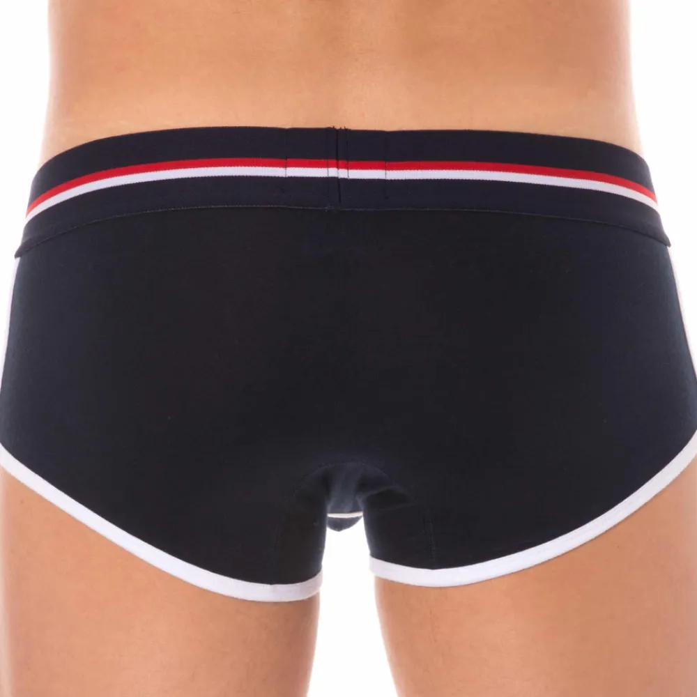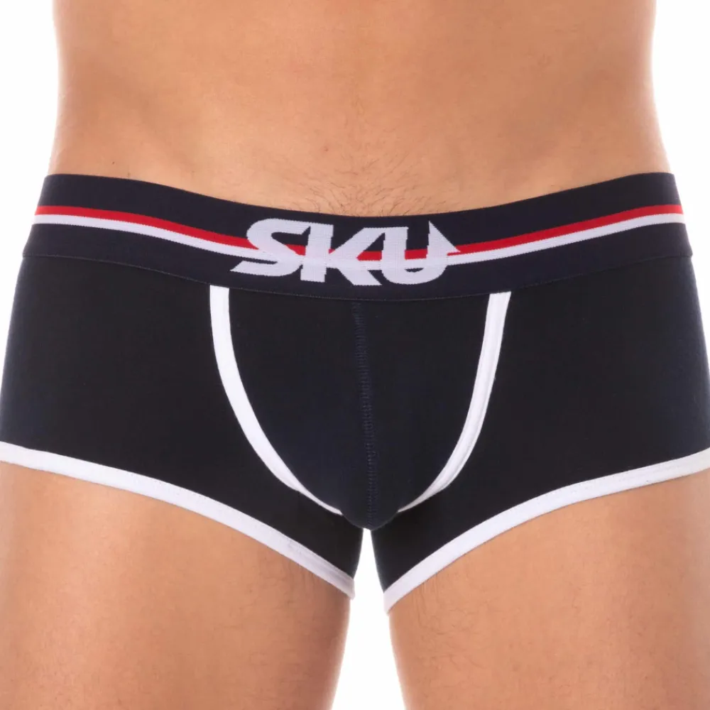 Shorty sport et sexy en coton premium doux et extensible de couleur intense. Coupe taille basse ajustée. Poche frontale préformée assurant un excellent maintien. Confort enveloppant sur les fesses. Belle échancrure sur le côté. Ceinture tricolore large et douce signée SKU. Bordures contrastées.