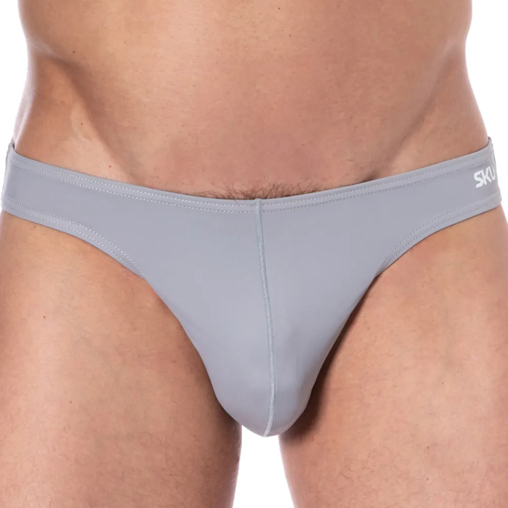 String de bain en microfibre séchant rapidement. Coupe taille basse très ajustée. Poche frontale non doublée. Logo SKU imprimé sur la hanche gauche. Fine ceinture élastique.