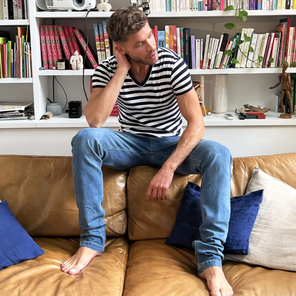 T-shirt sport et sexy en coton premium doux et extensible. Larges rayures horizontales façon marinière. Tissu yarn-dyed constitué de fils teints avant tissage pour des couleurs vives, un motif durable et un rendu exceptionnel. Cintré juste comme il faut, il valorisera votre musculature sans gêner vos mouvements. Coupe courte et arrondie en bas, pour tomber parfaitement sur un pantalon. Col en V. Bordures contrastées.
