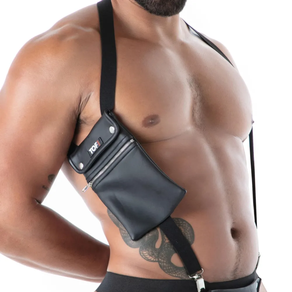 Harnais très original constitué de bretelles élastiques et d’une sacoche en néoprène pour un look fetish. 2 poches : 1 zippée et 1 avec fermeture par boutons-pression. Clips pour attacher à votre pantalon, short ou sous-vêtement. Etiquette TOF Paris en silicone. Fabrication française. Dimensions de la sacoche : 18 x 11 cm. Le néoprène est un caoutchouc synthétique durable, isolant et sans odeur. Vous apprécierez sa souplesse, sa douceur, son élasticité et sa résistance à l’humidité. Conseils d’entretien : laver à la main, ne pas repasser.