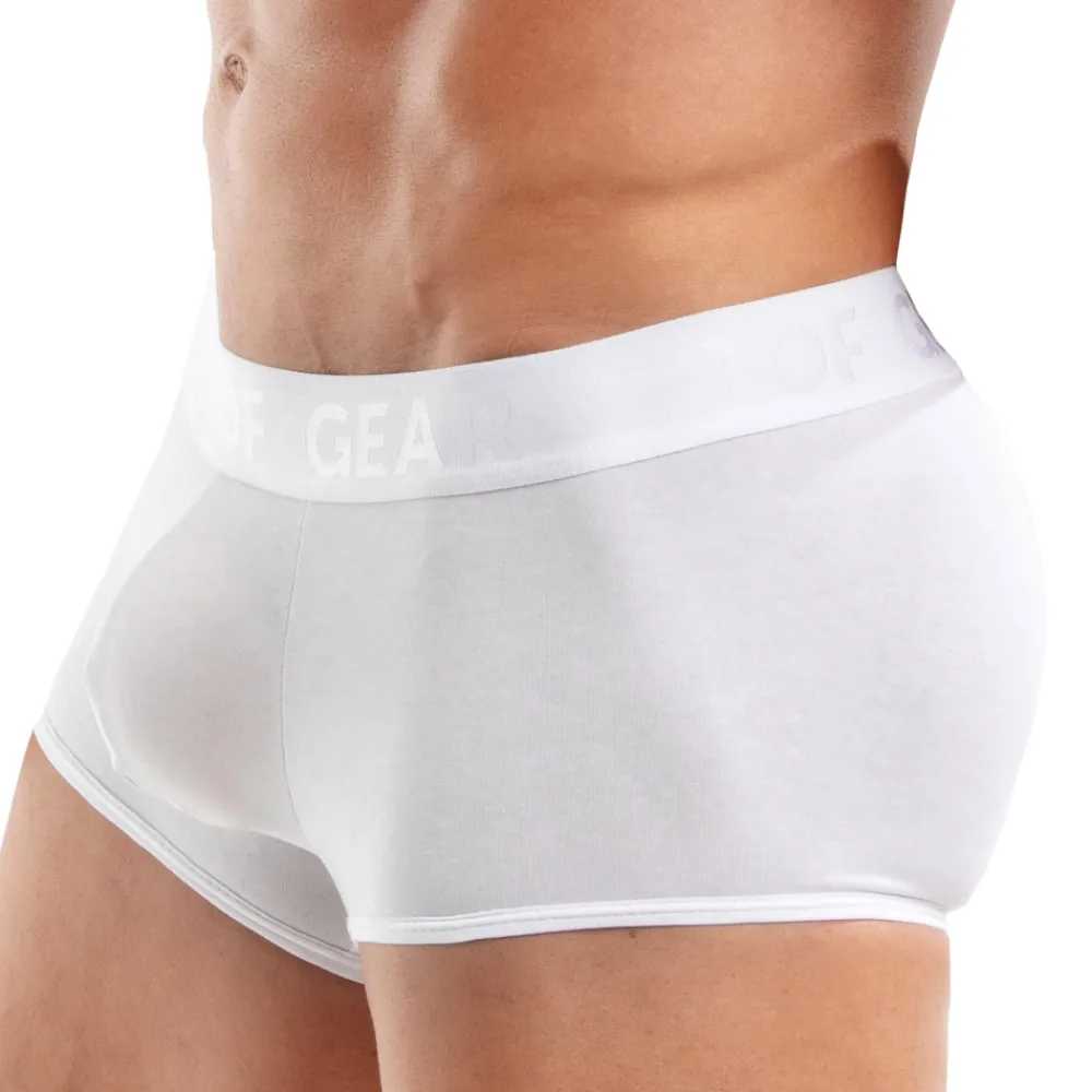Boxer doux et confortable en coton extensible de couleur unie. Coupe taille basse et ajustée. Poche frontale non doublée. Ceinture élastique satinée en jacquard signée TOF GEAR ton-sur-ton. Fabrication française.