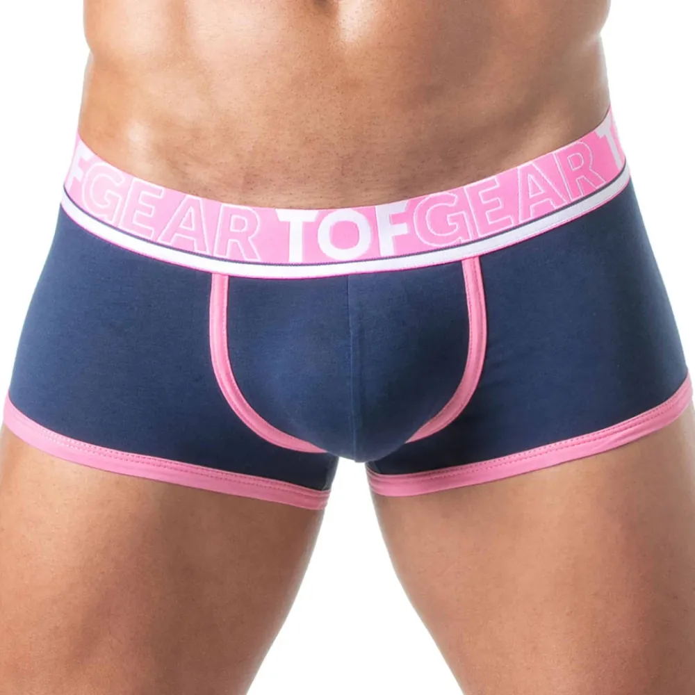 Boxer taille basse en coton extensible. Grande poche frontale non doublée. Bordures de couleur contrastée. Ceinture élastique jacquard signée TOF GEAR. Fabrication française.