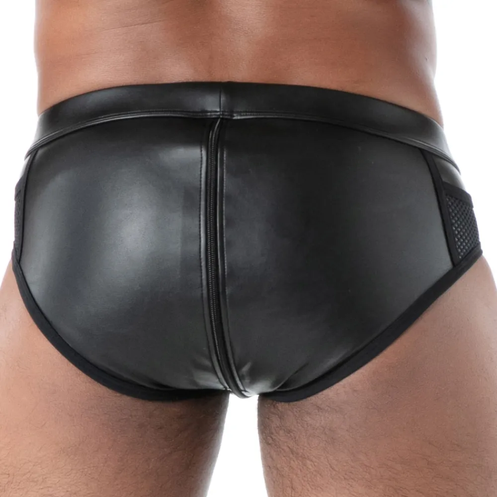 Slip sexy et provocant en simili-cuir extensible pour un look fetish. Fermeture Eclair à 3 curseurs sur toute la longueur, de l’avant à l’arrière, pour une ouverture parfaitement adaptée à vos envies. Petites poches latérales en résille. Etiquette TOF Paris en silicone cousue sur la ceinture élastique recouverte. Fabrication française. Conseils d’entretien : laver à 30°, ne pas sécher en machine, ne pas repasser.