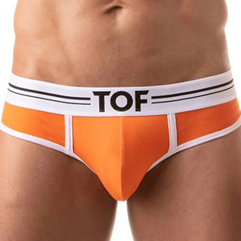 Slip taille basse en coton stretch. Grande poche frontale doublée. Bordures de couleur contrastée. Superbe coupe incurvée sans couture sur les côtés, pour un grand confort et de belles fesses rondes. Ceinture élastique jacquard signée TOF. Fabrication française.