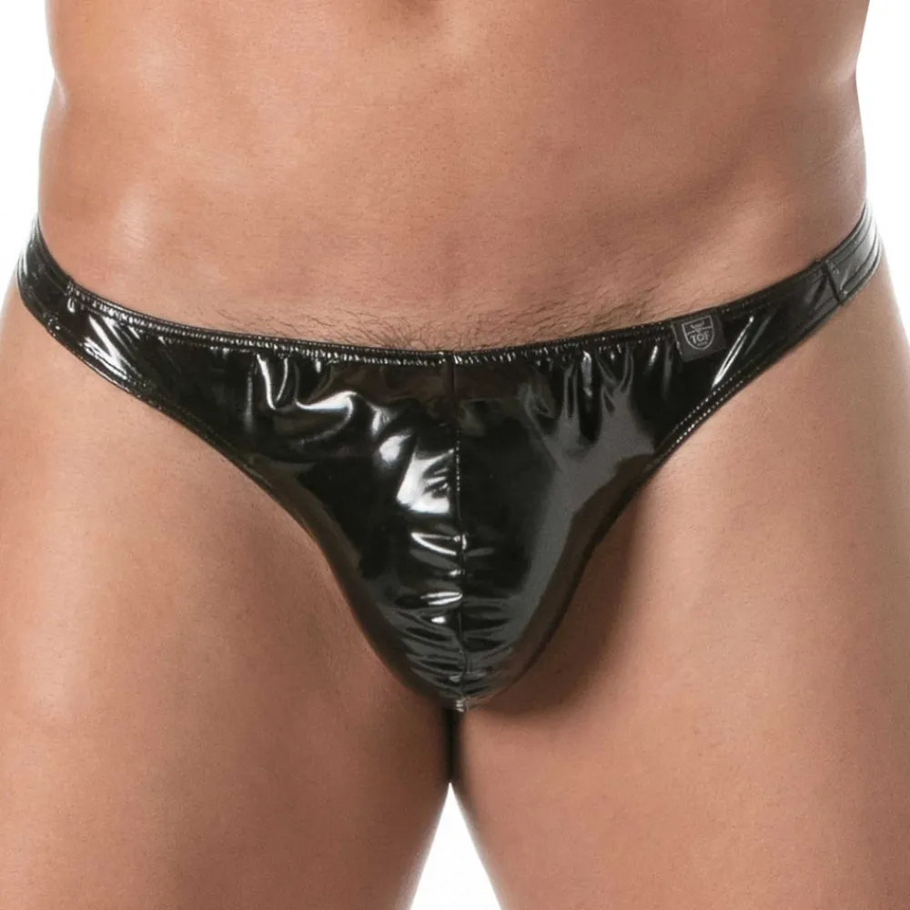 String sexy et provocant en microfibre stretch imitant le cuir ciré, pour un look très fetish. Poche frontale préformée, non doublée. Ceinture élastique fine avec étiquette TOF Paris. Fabrication française. Conseils d’entretien : laver à la main sans javel, ne pas sécher en machine, ne pas repasser.